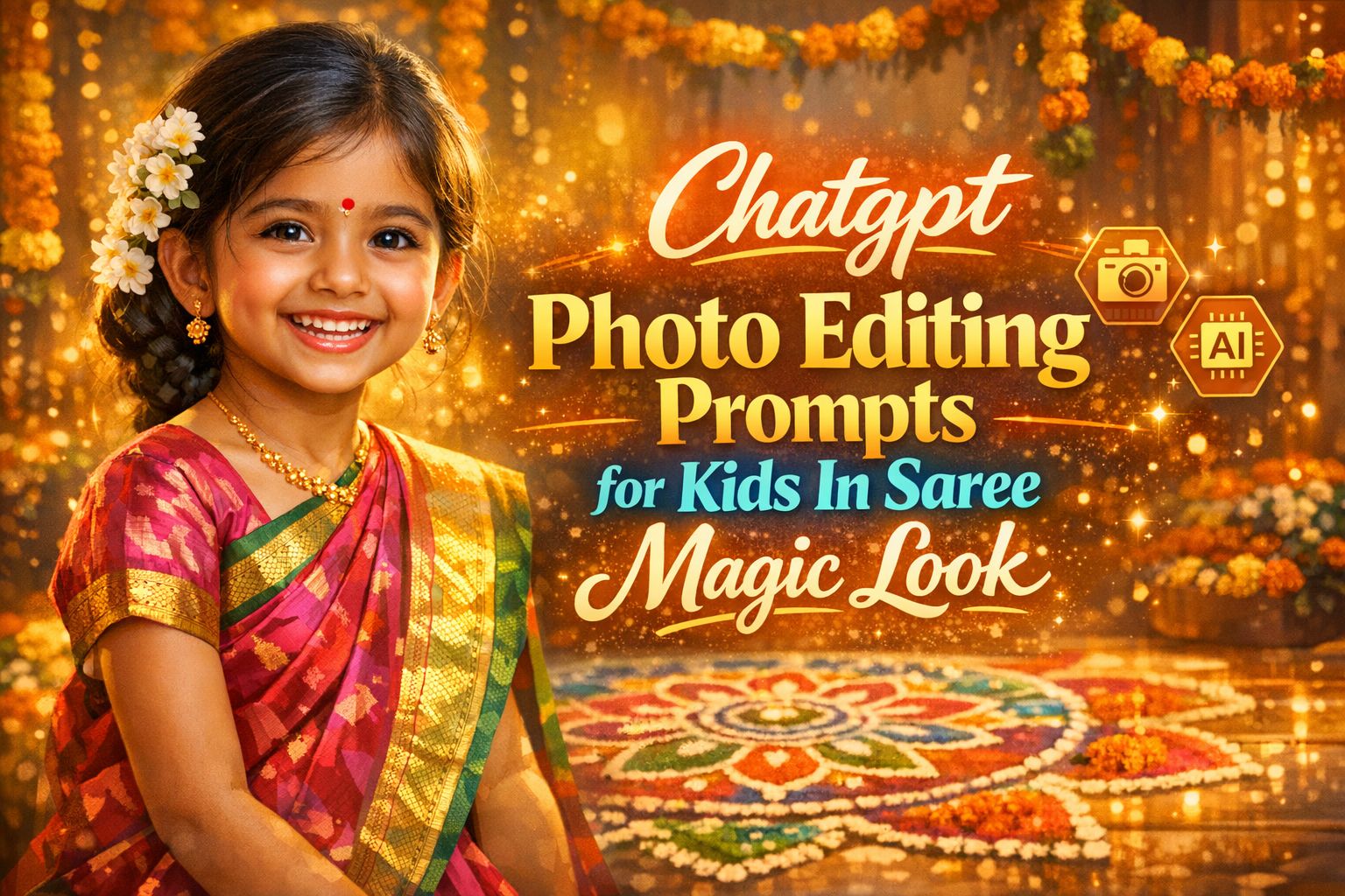 In this guide, I share simple prompts that help create adorable saree portraits for kids. The prompts are easy to use. No complicated words. Just copy, paste, and try.